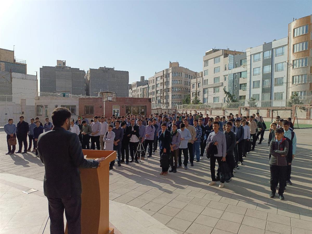 گفتگوی آزاد و چالشی دانش آموزان و معاونین آموزشی، مربی تربیتی و مدیر دبیرستان در زنگ پسرانه.